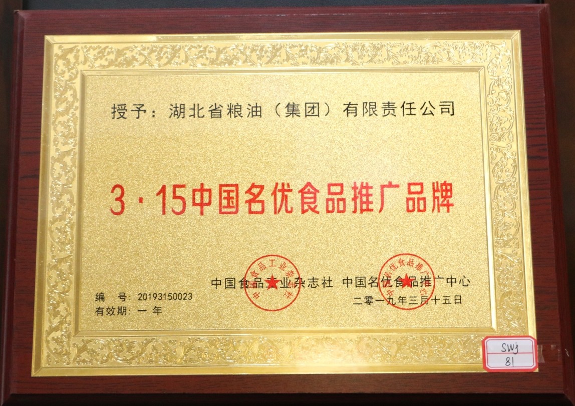 • 2019年榮獲第二十一屆荊楚大地--湖北糧油精品展示交易會(huì)組織獎(jiǎng)