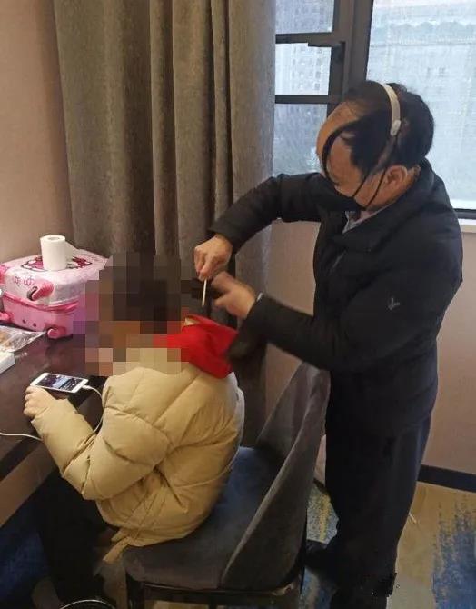 “你好,服務(wù)總臺。我是8316的,我的丈夫體溫突然升高……”欲哭無淚的焦急電話,讓我迅速放下手中的工作,快步跑向三樓(電梯為隔離對象專用通道)。我敲響了她的房門,沒看見她丈夫,她指了指衛(wèi)生間,她的丈夫正在浴室洗澡,門沒有關(guān),我慌亂地走進衛(wèi)生間,什么也顧不上,讓她丈夫擦干水后,拿起電子體溫計測了一下他的體溫,“37.5!臨界體溫。”只好安慰她,順便問了一下她丈夫的其他情況,“咳嗽不?胸悶不?咽喉癢不?”等等一些類似問題?;卮鸲际钦?,我就讓他先吃了抗病毒藥,等一小時后再測體溫。
