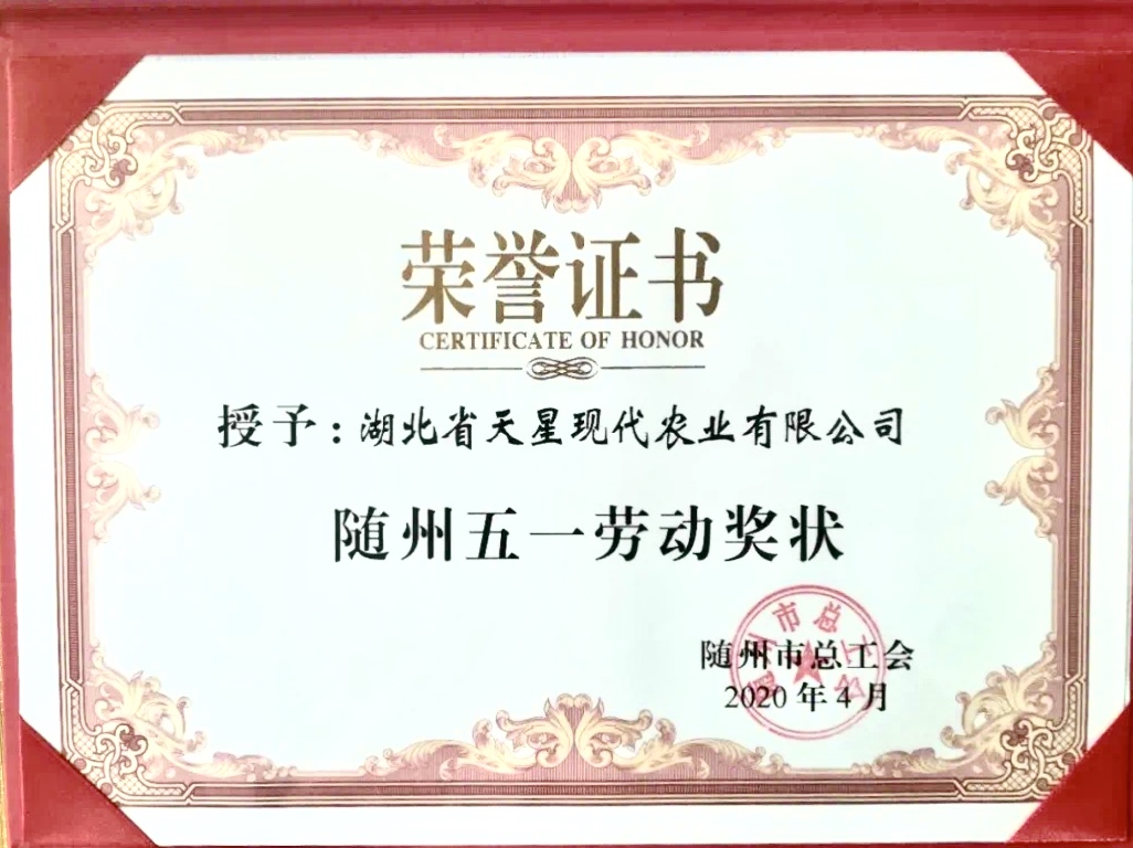 4月29日,在第130個(gè)國際勞動(dòng)節(jié)來臨之際,隨州市慶?!拔逡弧眹H勞動(dòng)節(jié)暨表彰大會(huì)隆重召開,長(zhǎng)投集團(tuán)所屬湖北省糧油集團(tuán)旗下湖北省天星現(xiàn)代農(nóng)業(yè)有限公司因工作表現(xiàn)積極,尤其是疫情期間貢獻(xiàn)突出,被隨州市總工會(huì)授予“隨州五一勞動(dòng)獎(jiǎng)狀”。