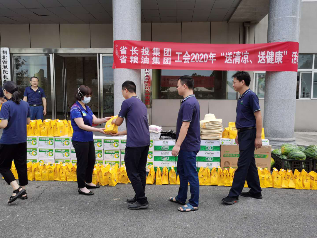為切實(shí)做好疫情防控常態(tài)化下安全生產(chǎn)和夏季防暑降溫工作,保證一線人員在生產(chǎn)過(guò)程中的安全和身體健康,7月下旬至8月中旬,湖北省糧油集團(tuán)工會(huì)開(kāi)展了“送清涼、送健康”系列慰問(wèn)活動(dòng),長(zhǎng)投集團(tuán)工會(huì)主席龐立、湖北省糧油集團(tuán)黨委副書記、總經(jīng)理?xiàng)罱ò?,黨委委員、紀(jì)委書記代利霞等領(lǐng)導(dǎo)先后走訪慰問(wèn)了現(xiàn)代農(nóng)業(yè)公司、孝感公司、潛江公司等12家企業(yè)共575名一線職工,為他們送去綠豆、西瓜、草帽等防暑降溫物資。