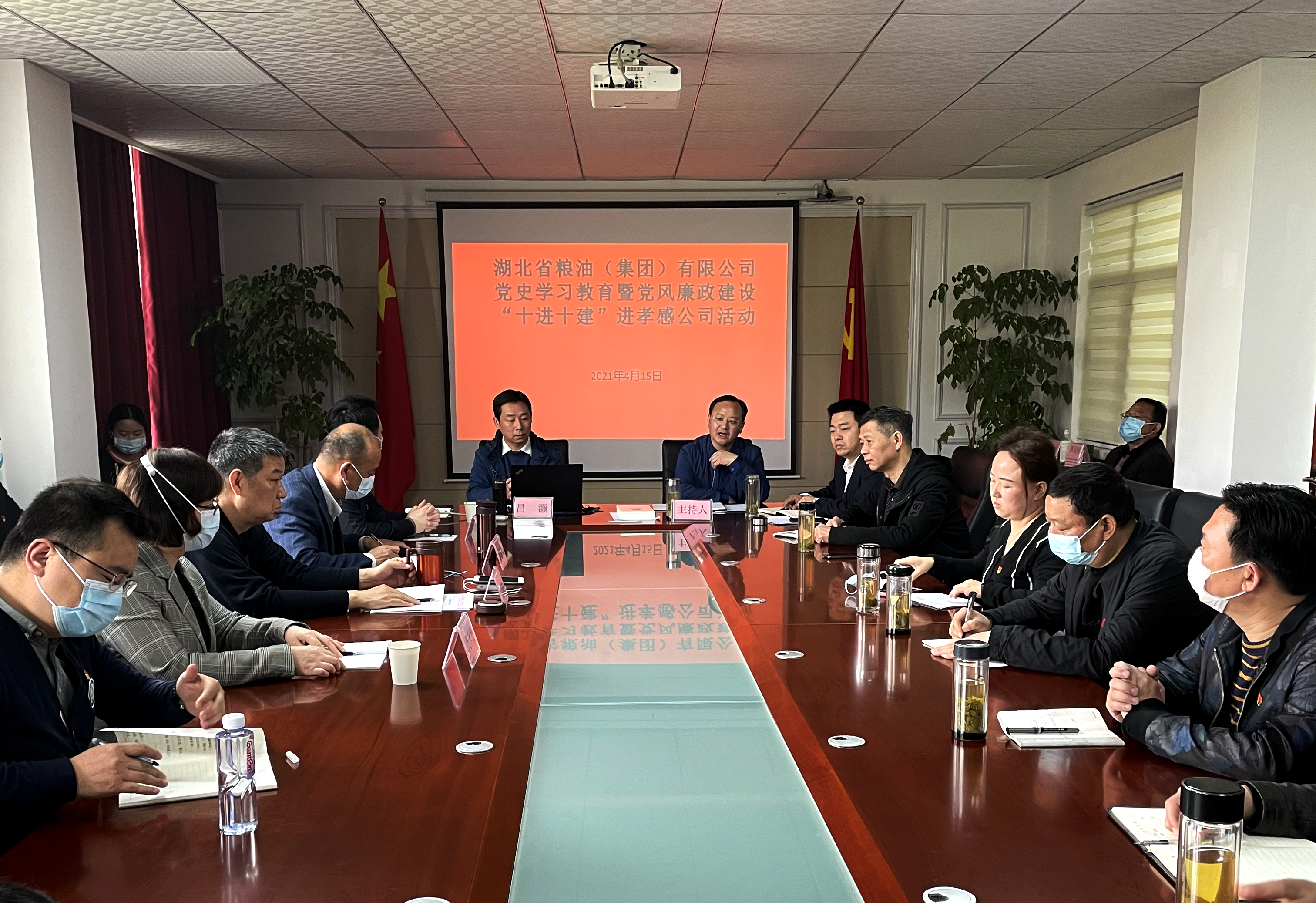 為進(jìn)一步推動(dòng)“清廉鄂糧”建設(shè)、“發(fā)展質(zhì)量(效能)提升年”活動(dòng),切實(shí)貫徹湖北省糧油集團(tuán)黨委關(guān)于黨史學(xué)習(xí)教育工作部署,4月15日,集團(tuán)黨史學(xué)習(xí)教育暨黨風(fēng)廉政建設(shè)“十進(jìn)十建”宣教共建活動(dòng)在孝感公司舉行,活動(dòng)由內(nèi)場(chǎng)會(huì)議與外場(chǎng)觀摩相結(jié)合,包括理論專家專題輔導(dǎo)、現(xiàn)場(chǎng)學(xué)習(xí)交流、發(fā)放教育書籍等環(huán)節(jié)。集團(tuán)黨委委員、紀(jì)委書記代利霞,集團(tuán)總法律顧問兼孝感公司黨支部書記、董事長廖雙文參加活動(dòng)并講話,集團(tuán)總農(nóng)藝師兼孝感公司副董事長、總經(jīng)理王林奎主持,集團(tuán)高管胡傳楚參加活動(dòng)。