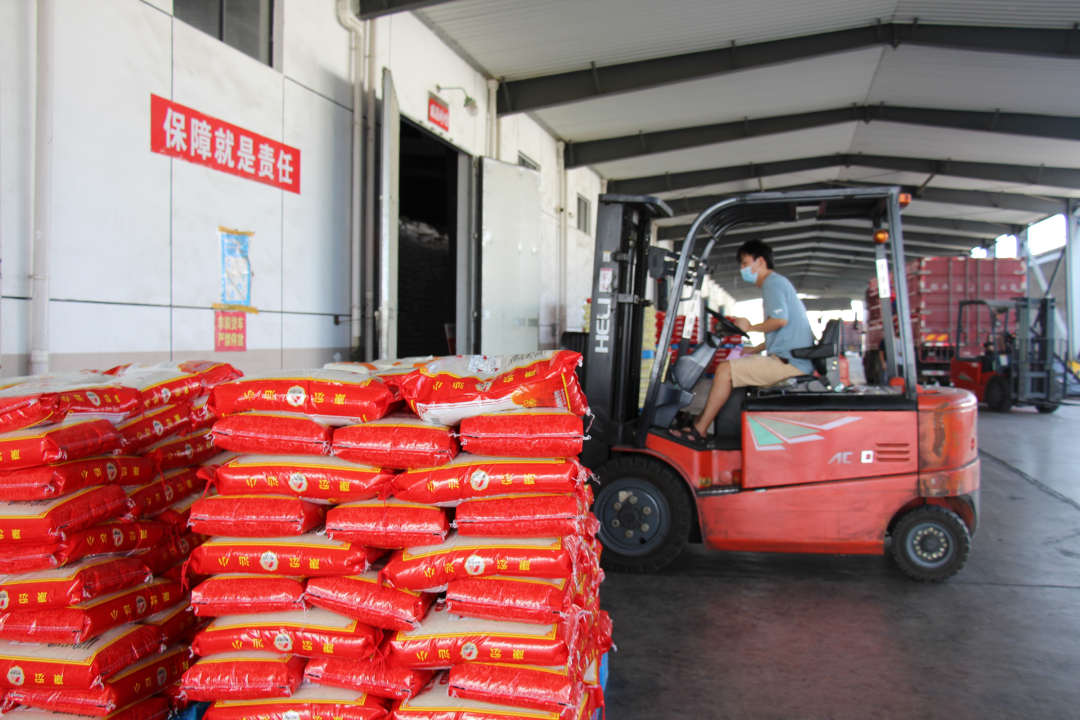 圖:康宏公司開(kāi)足生產(chǎn)線,加班加點(diǎn),日產(chǎn)成品大米600噸,日銷(xiāo)售大米400噸,有效保證糧油供應(yīng)。