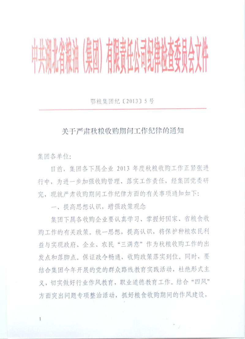 關(guān)于嚴(yán)肅秋糧收購(gòu)期間工作紀(jì)律的通知