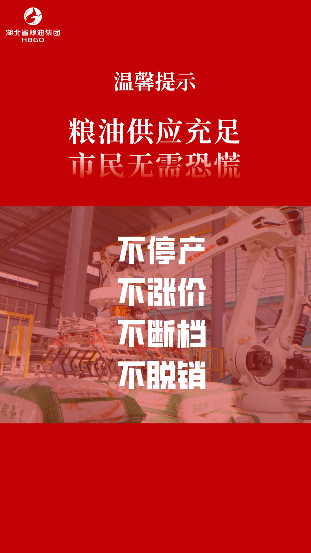 我集團鄭重承諾,任何情況任何時候都堅決做到不停產、不漲價、不斷檔、不脫銷,全力保障全省人民糧食安全和糧油市場穩(wěn)定。