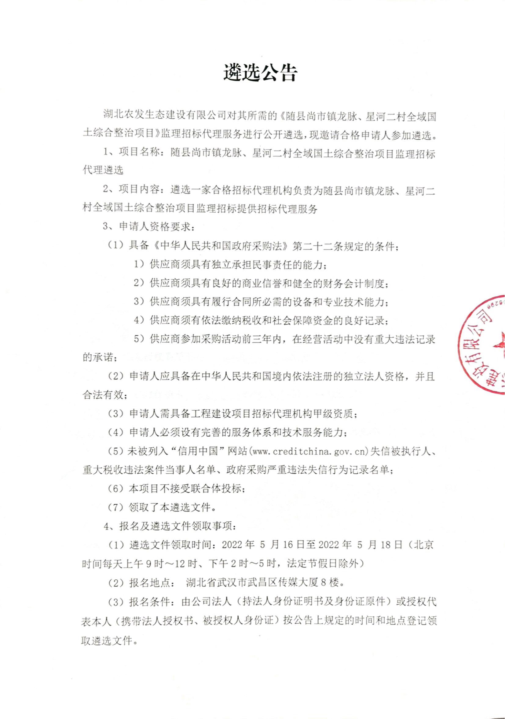 遴選公告(監(jiān)理招標(biāo)代理遴選)