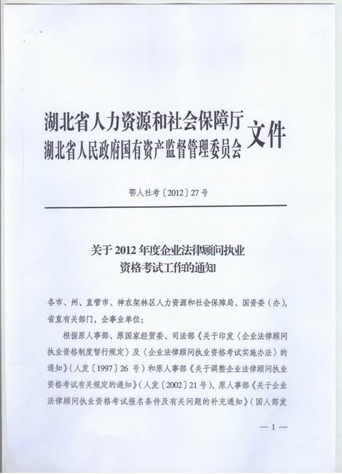 接上級(jí)《關(guān)于2012年度企業(yè)法律顧問(wèn)執(zhí)業(yè)資格考試工作的通知》(鄂人社考[2012]27號(hào)),2012年度全國(guó)企業(yè)法律顧問(wèn)執(zhí)業(yè)資格考試將于10月份舉行,現(xiàn)將考試通知下發(fā)。