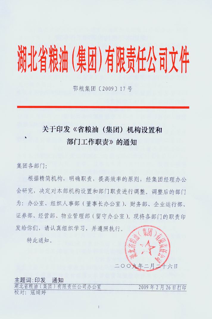 為了提高工作效率,明確責(zé)任分工,加強協(xié)調(diào)合作,經(jīng)研究決定將本部機構(gòu)設(shè)置調(diào)整為辦公室、組織人事部(董事長辦公室)、財務(wù)部、企業(yè)運行部、證券部、市場部和物業(yè)部(留守辦公室)7個部室,各部門工作職責(zé)如下: