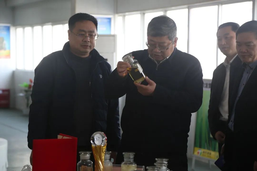 王立兵一行實地參觀了公司稻米油系列國家標(biāo)準(zhǔn)驗證聯(lián)合實驗室、稻米油生產(chǎn)車間和產(chǎn)品展示廳、谷維素生產(chǎn)車間,詢問了公司稻米油全產(chǎn)業(yè)鏈開發(fā)建設(shè)、谷維素制藥項目建設(shè)、科技投入產(chǎn)品研發(fā)、人才培養(yǎng)相關(guān)情況。