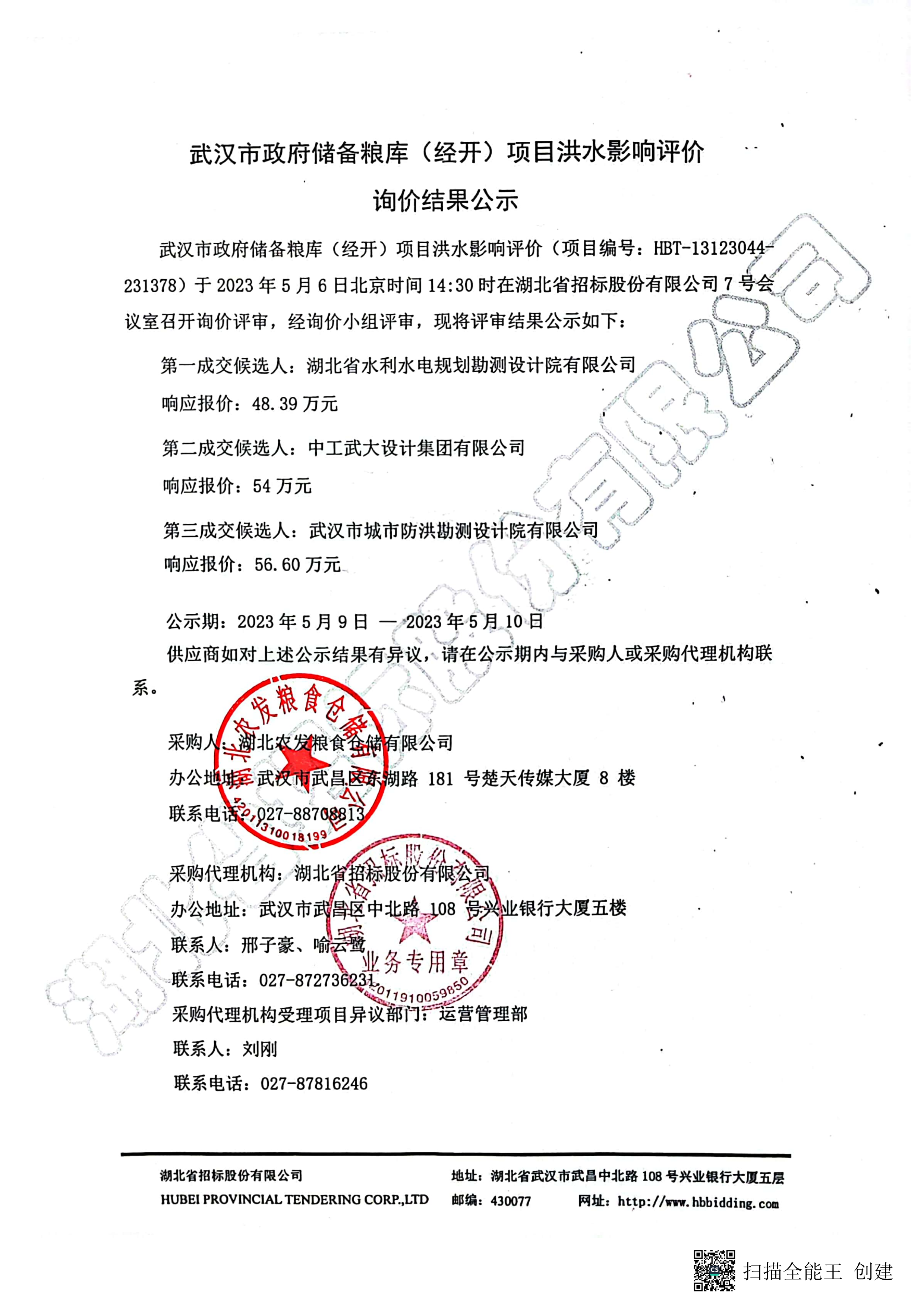 武漢市政府儲備糧庫(經(jīng)開)項(xiàng)目洪水影響評價(jià)詢價(jià)結(jié)果公示