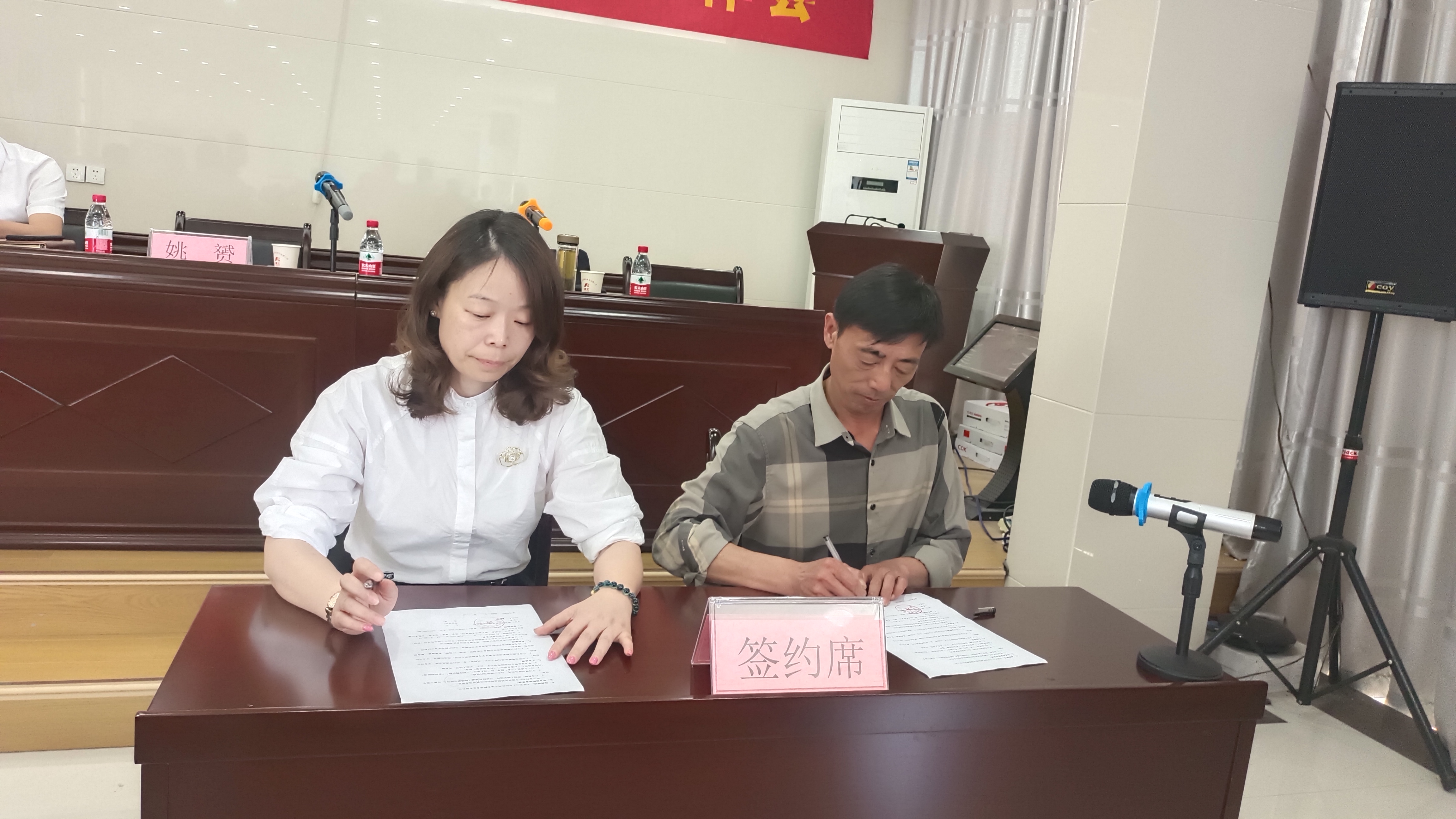 會(huì)議現(xiàn)場(chǎng),姚赟與種植戶代表簽訂訂單收購(gòu)合同