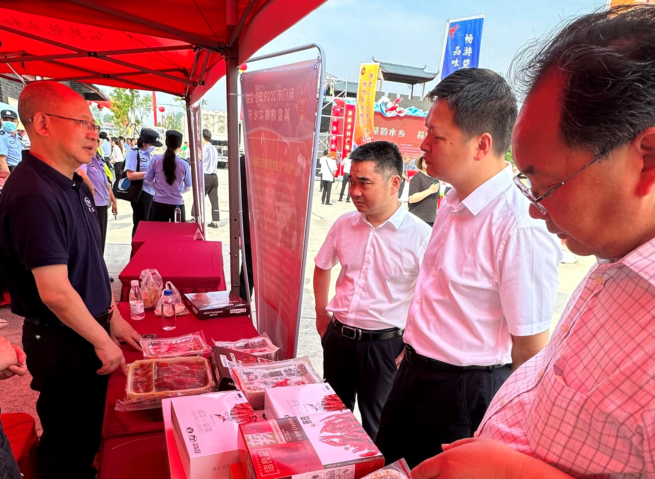 期間,龐虎一行分別參加了由荊門市政府組織的“荊門市2023年小龍蝦美食旅游文化節(jié)”開幕式,潛江市政府組織的“2023年第十四屆湖北(潛江)龍蝦節(jié)暨第七屆蝦-稻產(chǎn)業(yè)博覽會”開幕式。