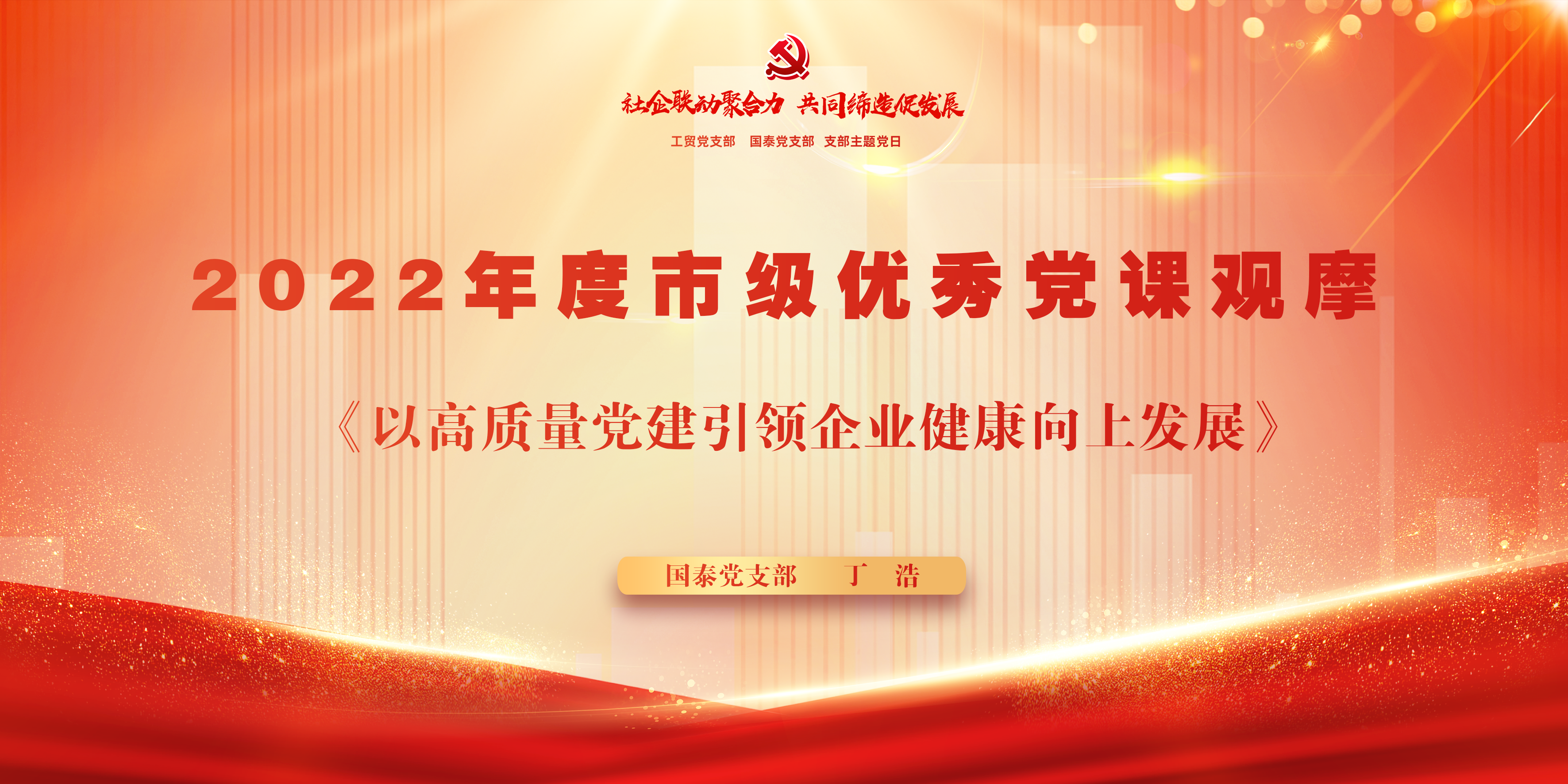 國泰黨支部始終堅持以黨建引領(lǐng)展現(xiàn)企業(yè)風(fēng)采,探索提煉出“一二三四五”黨建工作法,走出了一條具有國泰特色的黨建引領(lǐng)企業(yè)高質(zhì)量發(fā)展之路,為助推武湖高質(zhì)量社會經(jīng)濟發(fā)展貢獻力量。2022年由國泰新城支部書記丁浩主講的《以高質(zhì)量黨建引領(lǐng)企業(yè)健康向上發(fā)展》黨課就是對國泰黨支部一直以來黨建工作的全面總結(jié),該黨課獲評2022年武漢級優(yōu)秀黨課二等獎?;顒蝇F(xiàn)場大家一起觀摩了該黨課。