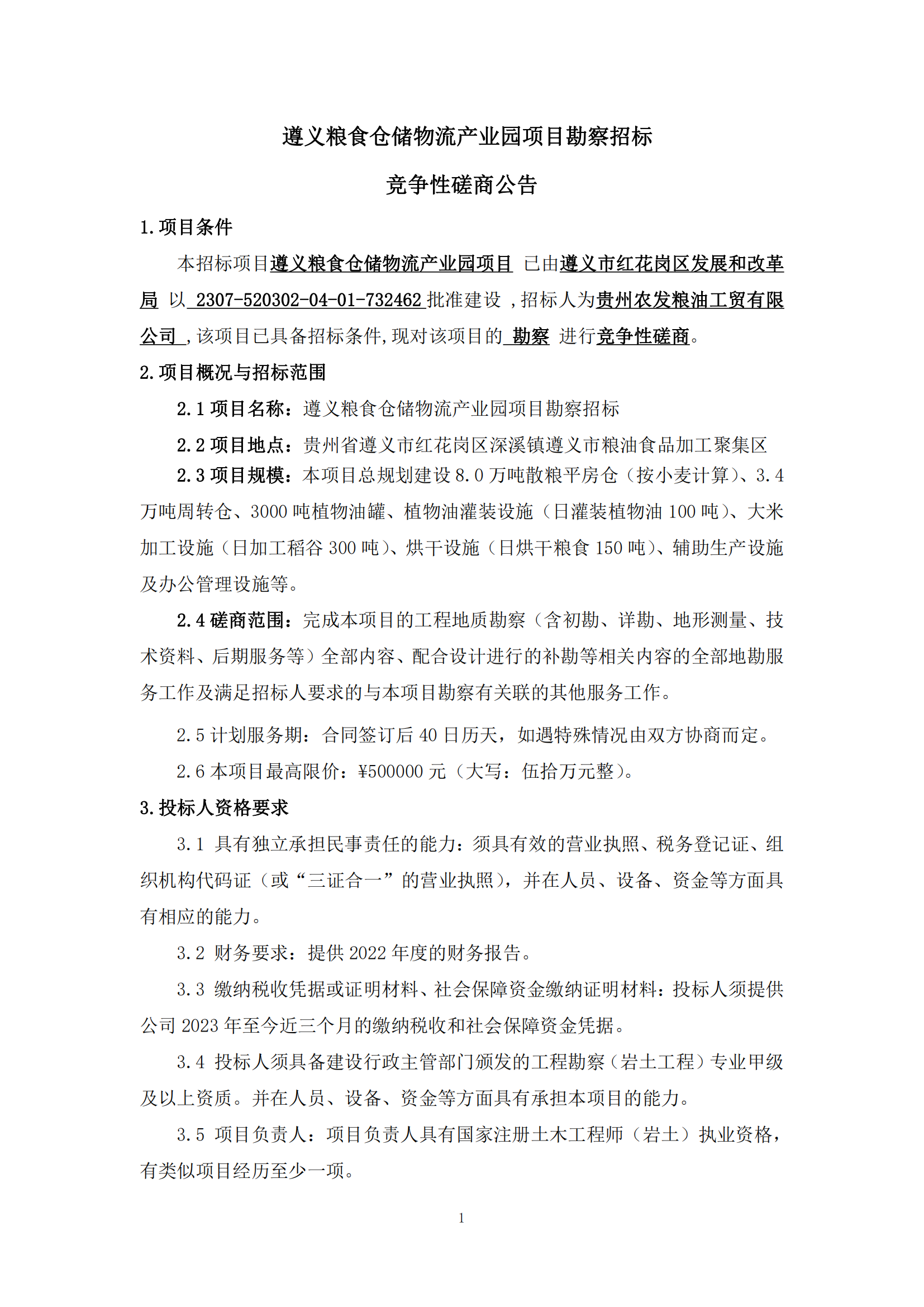 遵義糧食倉儲物流產(chǎn)業(yè)園項(xiàng)目勘察招標(biāo)競爭性磋商公告