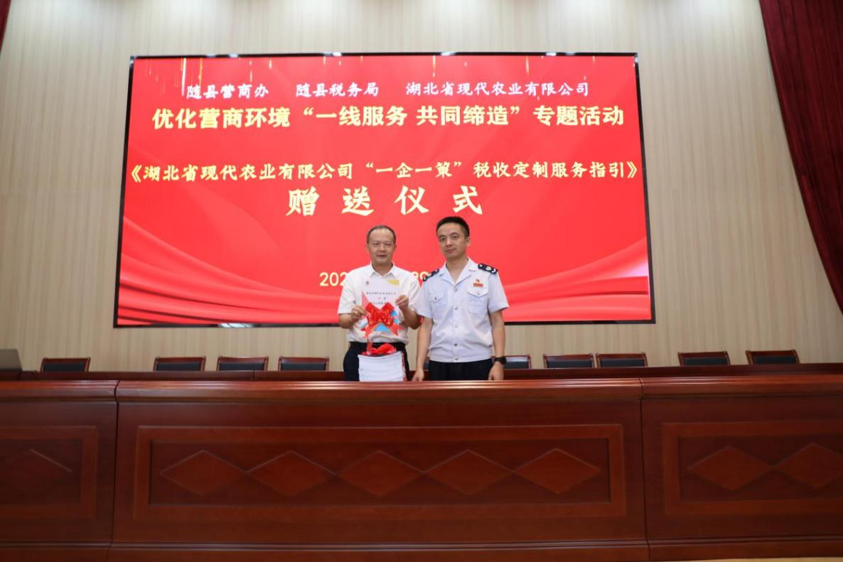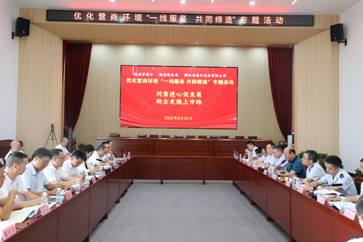 8月29日,為深入貫徹落實《隨州市黨建引領營商環(huán)境“共同締造”工作實施方案》文件精神,全力培育和服務本地“金種子”企業(yè)沖刺上市,隨縣營商辦、隨縣稅務局聯(lián)合湖北省現(xiàn)代農(nóng)業(yè)有限公司共同開展優(yōu)化了營商環(huán)境“一線服務、共同締造”活動。湖北省糧油集團黨委委員、副總經(jīng)理,湖北省現(xiàn)代農(nóng)業(yè)有限公司黨支部書記、董事長鄭勇出席會議。