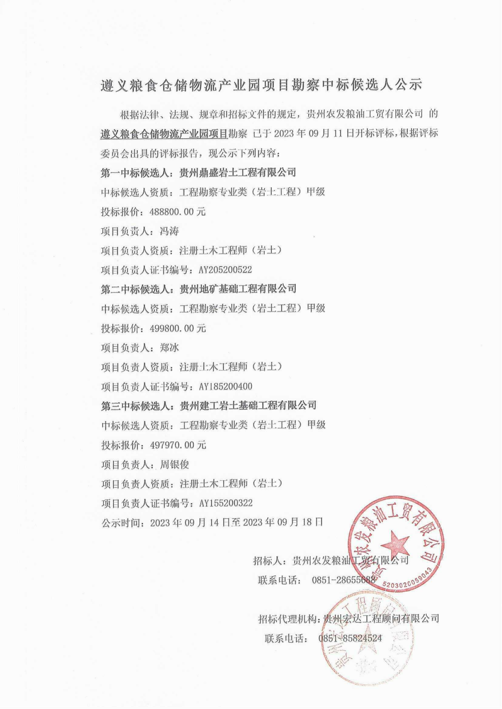 遵義糧食倉(cāng)儲(chǔ)物流產(chǎn)業(yè)園項(xiàng)目勘察中標(biāo)候選人公示