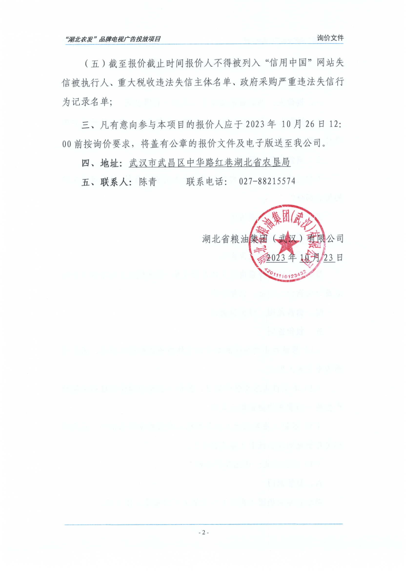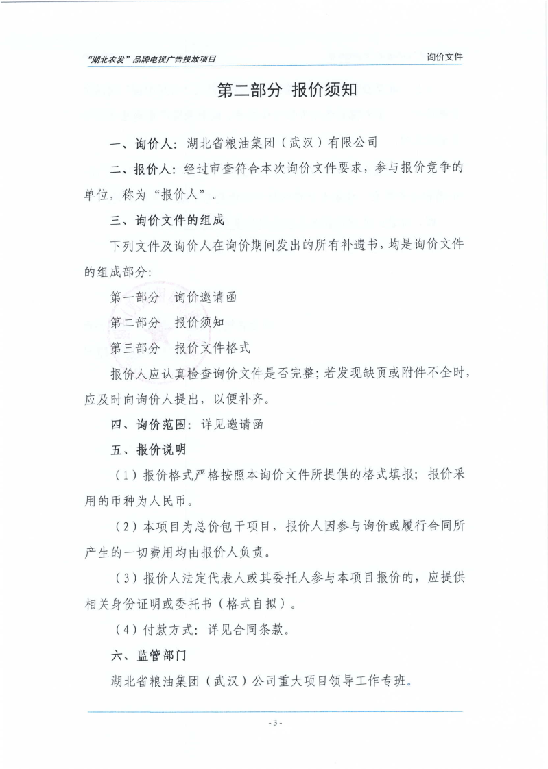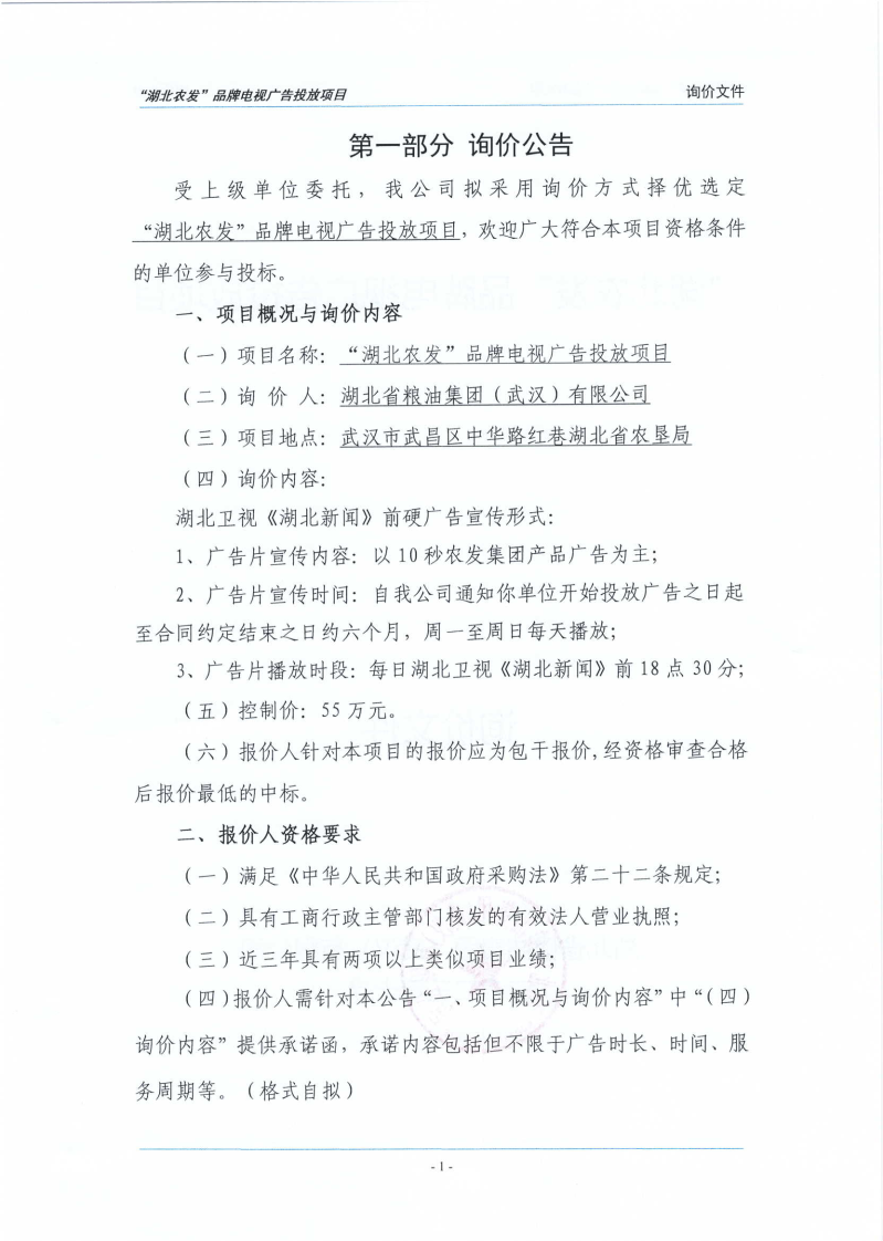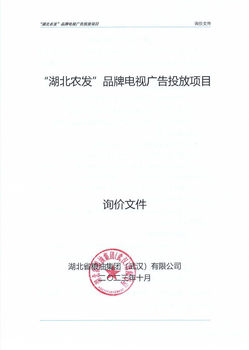 “湖北農(nóng)發(fā)”品牌電視廣告投放項(xiàng)目詢價(jià)公告