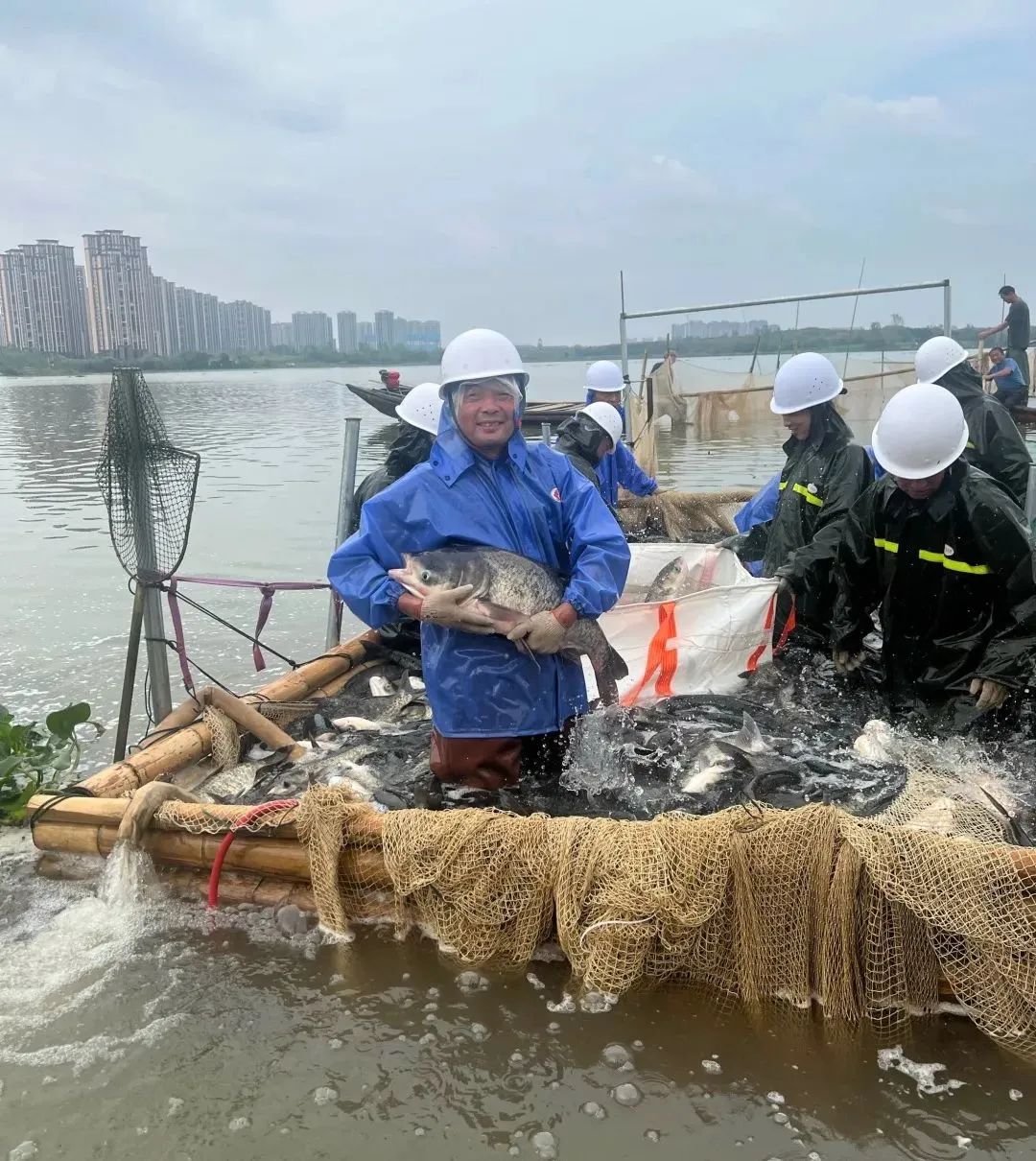 雙節(jié)期間正是鄂州保水漁業(yè)基地水美魚肥時(shí)候。“1,2,3,拉!”9月28日,隨著一筐筐花鰱滿載出水并吊運(yùn)裝車,標(biāo)志著鄂州基地秋捕正式開始。