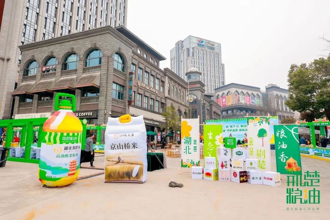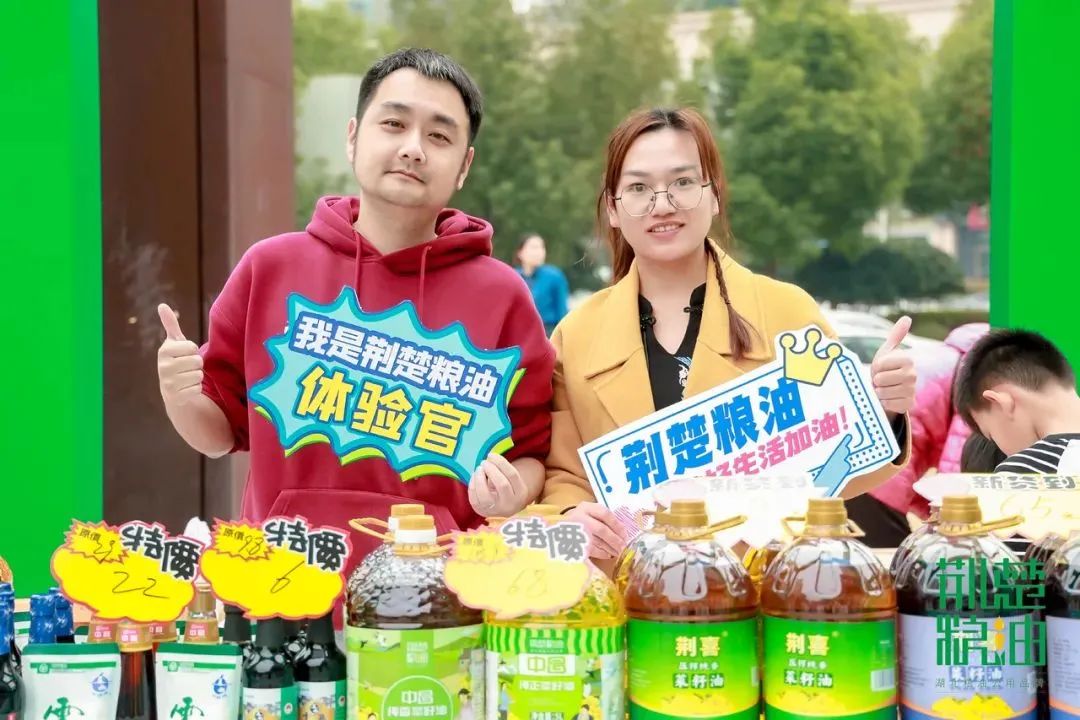 一個帶有“荊楚糧油”logo的巨型油瓶和一個“江漢大米”超大米袋,醒目震撼,網(wǎng)感十足,吸引不少游客和市民紛紛圍觀打卡拍照,為活動增添更多趣味,有力傳播荊楚糧油品牌能量。