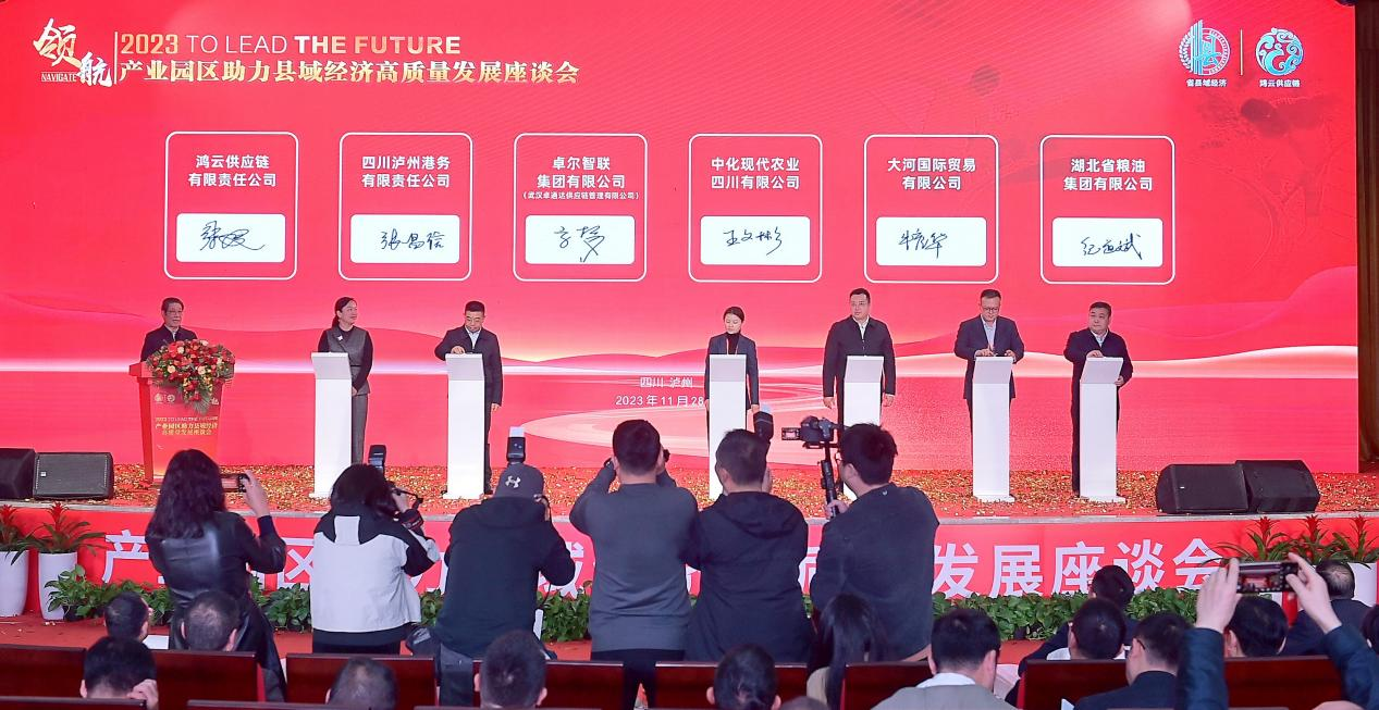 11月28日,產(chǎn)業(yè)園區(qū)助力縣域經(jīng)濟(jì)高質(zhì)量發(fā)展座談會(huì)在四川瀘州舉行,湖北省糧油集團(tuán)黨委書(shū)記、董事長(zhǎng)紀(jì)道斌受邀參會(huì),并作為企業(yè)代表與四川酒糧供應(yīng)鏈相關(guān)企業(yè)就建立口糧、酒糧、飼料糧等業(yè)務(wù)簽署戰(zhàn)略合作協(xié)議。