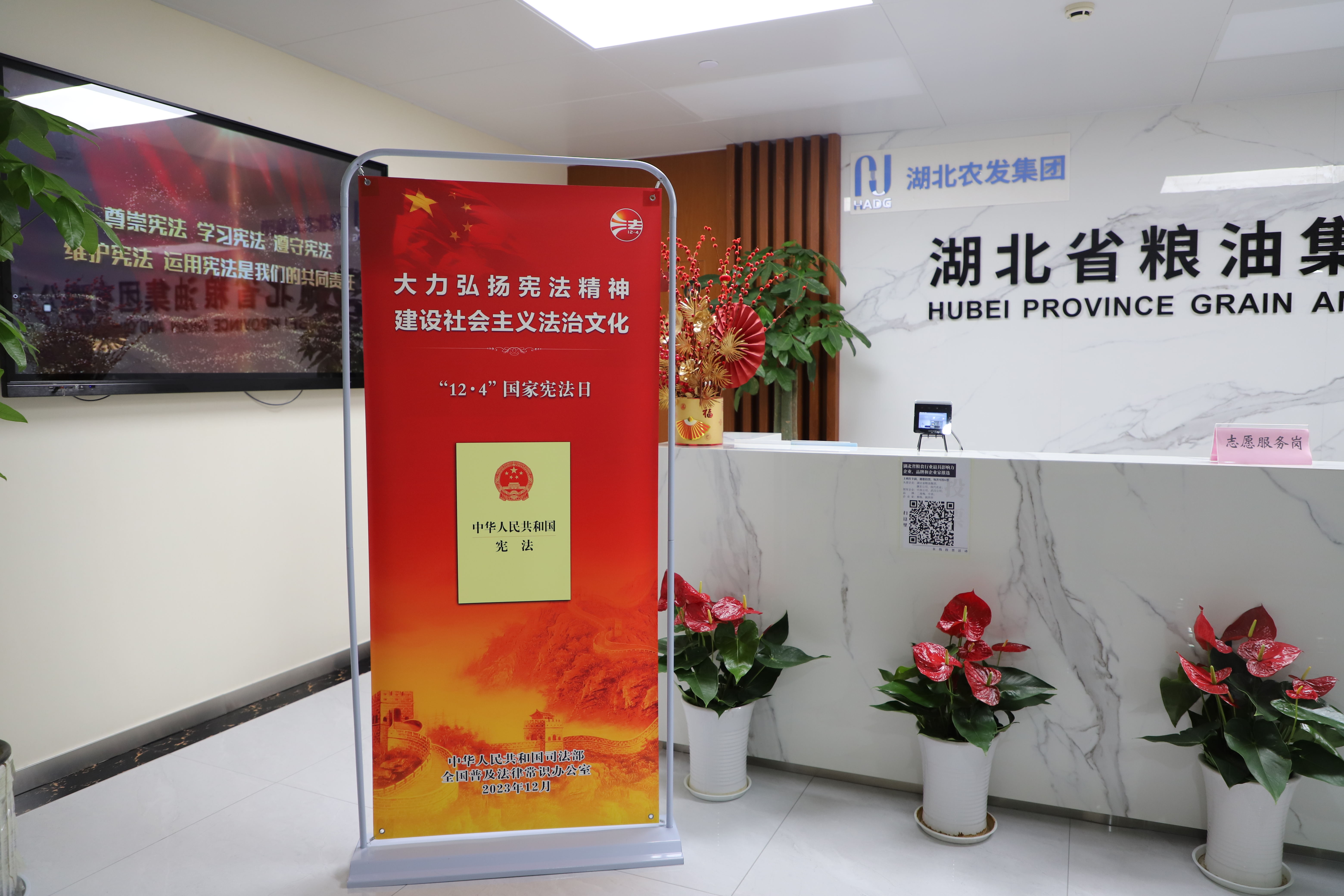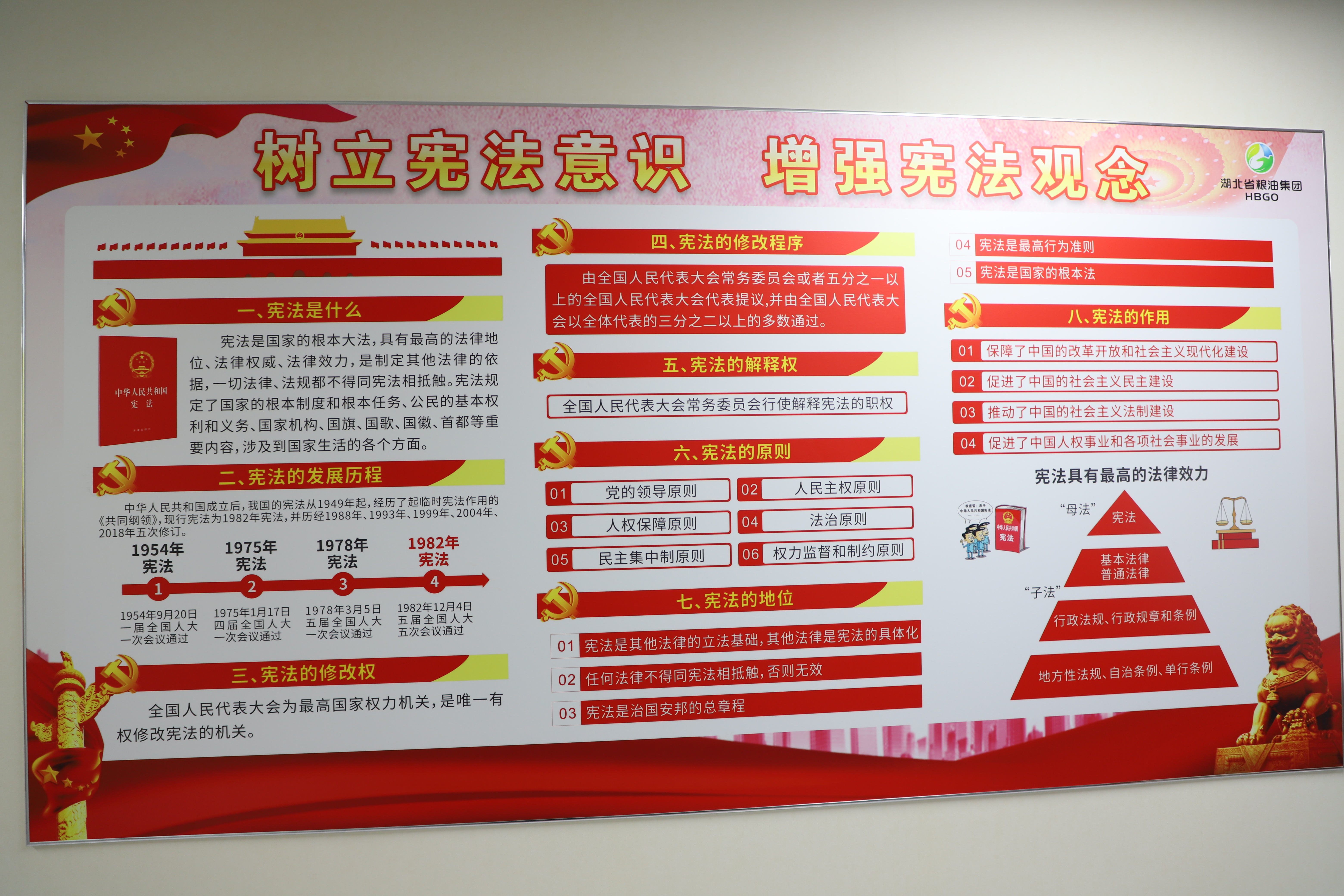 憲法宣傳周期間,湖北省糧油集團(tuán)將開展以憲法為主要內(nèi)容的法治宣傳活動,通過會議學(xué)習(xí)、公眾號宣傳、投屏展板宣傳等形式廣泛宣傳憲法知識,弘揚(yáng)憲法精神。