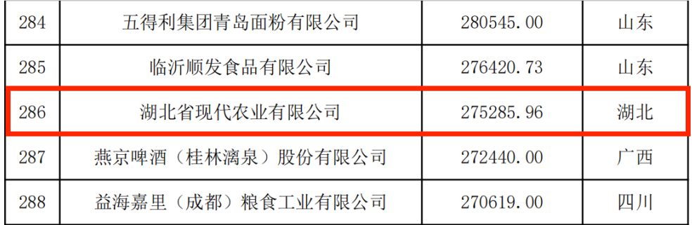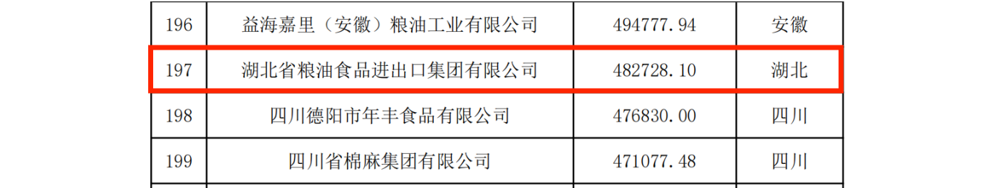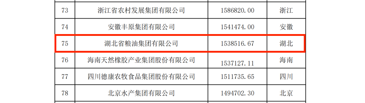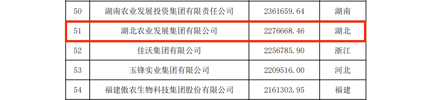 12月20日,農(nóng)民日報社和全國農(nóng)業(yè)企業(yè)發(fā)展聯(lián)盟共同發(fā)布了《2023中國農(nóng)業(yè)企業(yè)500強》榜單。湖北農(nóng)發(fā)集團位列第51名,湖北省糧油集團位列榜單第75名,較去年提升44名,湖北省糧油進出口集團位列第197名,湖北省現(xiàn)代農(nóng)業(yè)有限公司位列榜單286名。