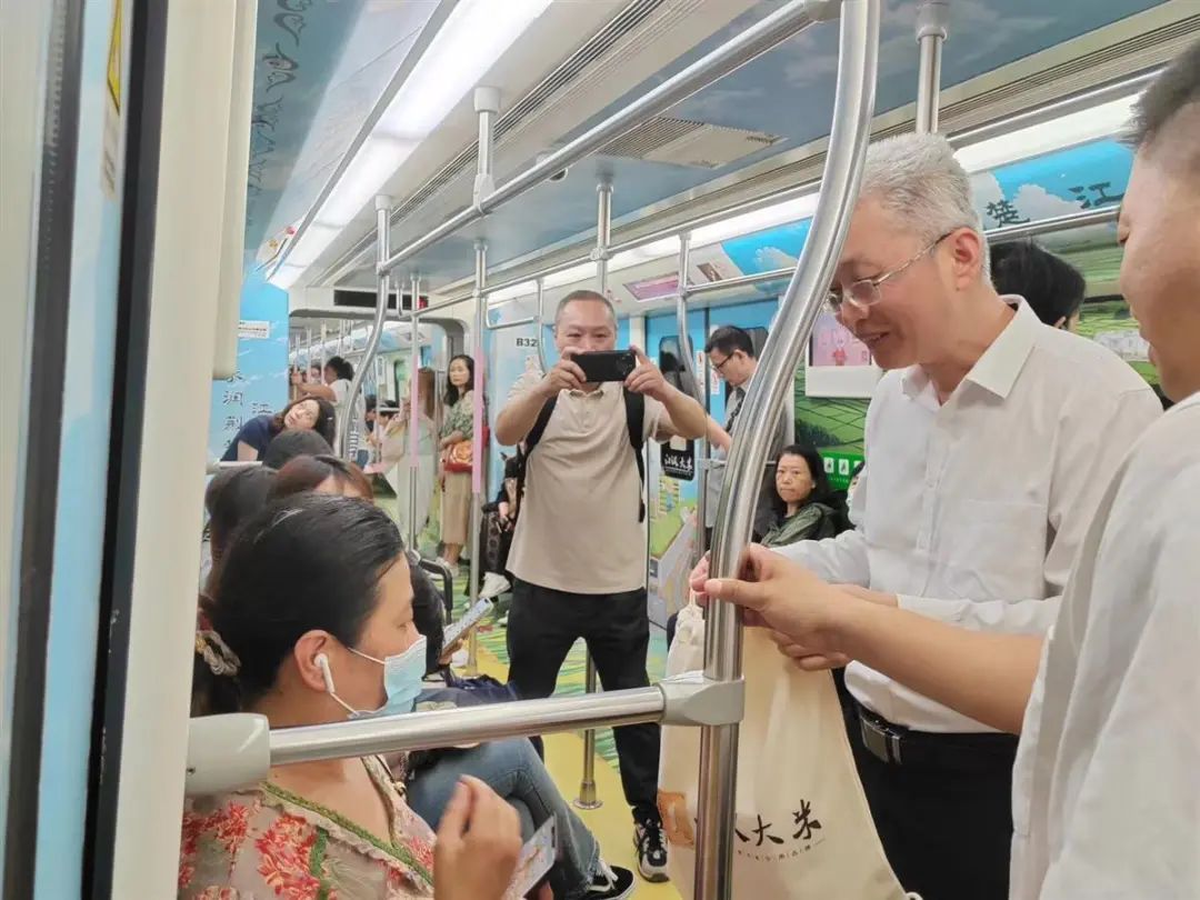 當(dāng)日,市民朋友們驚訝地發(fā)現(xiàn),他們步入了一個“米香四溢”的地鐵車廂,車廂內(nèi)國寶橋米、湖北洪森實業(yè)、湖北康宏糧油、湖北莊品健實業(yè)、湖北蝦鄉(xiāng)食品、仙桃市恒泰米業(yè)、當(dāng)陽民天米業(yè)、益海嘉里(武漢)糧油工業(yè)、江陵巷子深米業(yè)、監(jiān)利名宇米業(yè)等10家“江漢大米”首批授權(quán)核心企業(yè)產(chǎn)品一一展示,全包圍式場景沉浸讓人感慨“江漢大米”的獨特體驗。