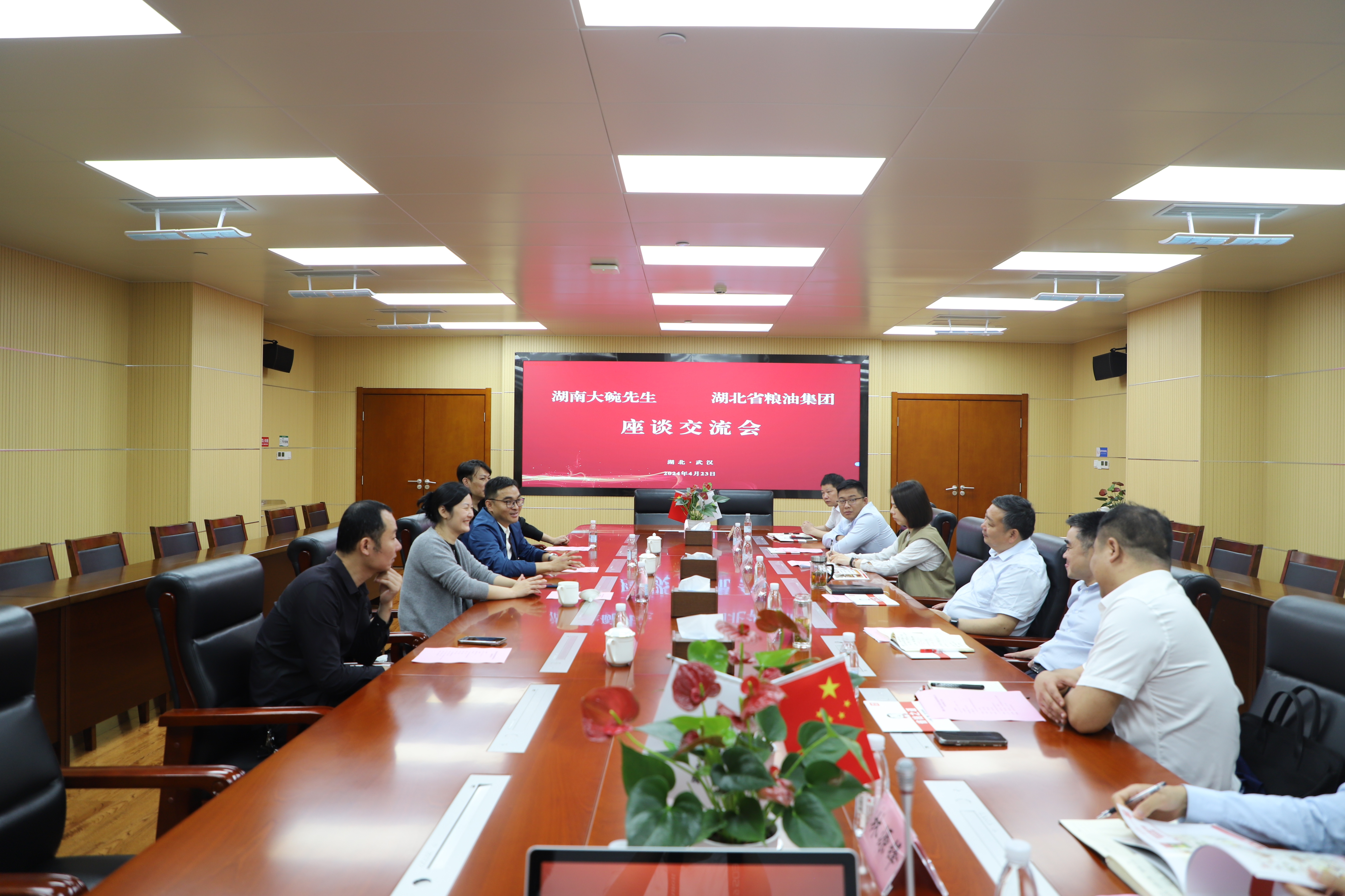 4月23日,湖北省糧油集團(tuán)黨委書記、董事長紀(jì)道斌會(huì)見湖南大碗先生餐飲連鎖管理有限公司總經(jīng)理張海英一行,就旗下國泰公司與大碗先生公司供應(yīng)鏈合作事宜交流洽談。集團(tuán)黨委委員、副總經(jīng)理鄭勇,黨委委員、總會(huì)計(jì)師趙秀峰參加座談。