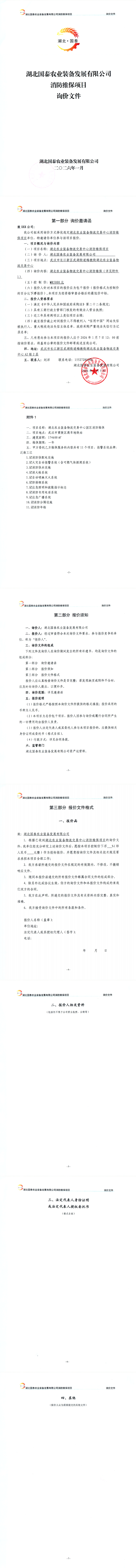湖北國泰農(nóng)業(yè)裝備發(fā)展有限公司消防維保項目詢價公告