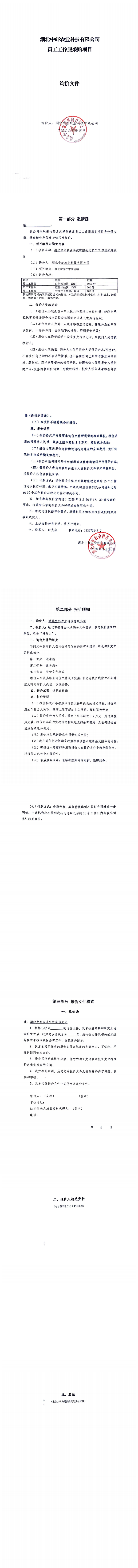 湖北中蝦農(nóng)業(yè)科技有限公司員工工作服采購項目詢價公告
