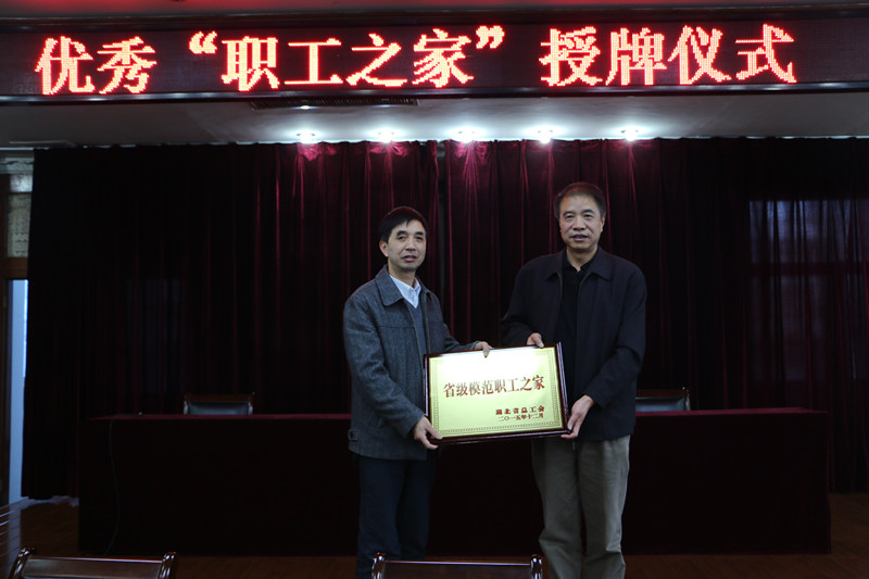 省總工會經(jīng)貿(mào)工會副主任顧廣飛對糧油集團工會的工作予以了高度的肯定。他指出,近年來,省糧油集團工會主動服務(wù)企業(yè)發(fā)展,不斷開拓創(chuàng)新,在工會組織建設(shè)、職工權(quán)益維護和文體活動等方面取得了顯著成績。隨后,省總工會經(jīng)貿(mào)工會肖嬌同志宣讀了《關(guān)于表彰省級模范職工之家的決定》;顧廣飛主任代表省總工會向杜梅清主席頒發(fā)了“省級模范職工之家”的獎牌。