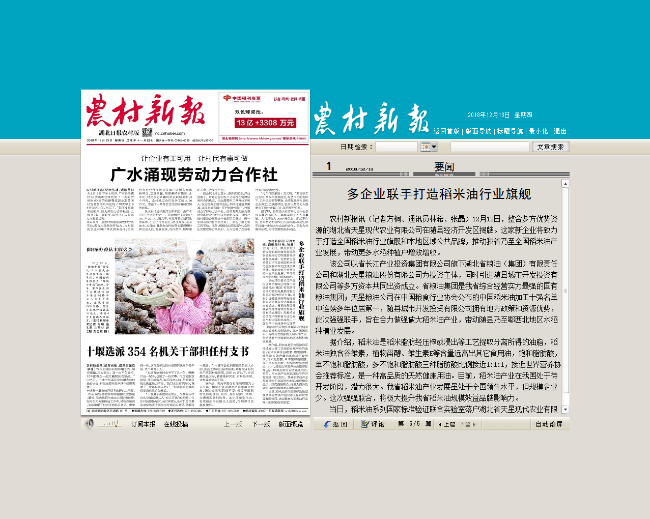 當(dāng)日,稻米油系列國(guó)家標(biāo)準(zhǔn)驗(yàn)證聯(lián)合實(shí)驗(yàn)室落戶湖北省天星現(xiàn)代農(nóng)業(yè)有限公司,該實(shí)驗(yàn)室為稻米油行業(yè)唯一的國(guó)家級(jí)實(shí)驗(yàn)室。