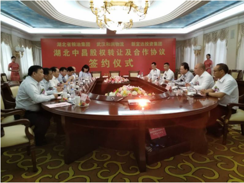 6月8日,省糧油集團(tuán)中昌植物油有限公司股權(quán)轉(zhuǎn)讓暨合作協(xié)議簽約儀式在浙江省舟山市舉行。省長投集團(tuán)黨委書記、董事長何大春,省長投集團(tuán)高管兼糧油集團(tuán)黨委書記、董事長萬衛(wèi)東,和潤集團(tuán)董事局主席虞松波,和潤集團(tuán)總裁張勇,和潤集團(tuán)副總裁兼中海糧油董事長趙興龍出席簽約儀式并進(jìn)行會談。糧油集團(tuán)黨委委員、副總經(jīng)理紀(jì)道斌,武漢和潤物流有限公司總經(jīng)理肖振曉,新宜達(dá)投資集團(tuán)有限公司總經(jīng)理李煒代表三方簽約。