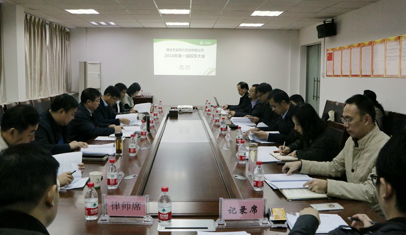 2018年11月16日,糧油集團(tuán)、湖北天星糧油股份有限公司、隨縣城投、湖北中壹農(nóng)業(yè)等共同出資的湖北天星現(xiàn)代農(nóng)業(yè)有限公司(籌)按照《公司法》相關(guān)規(guī)定,在武漢召開第一屆股東會和董事會第一次會議。股東或股東代表出席會議。
