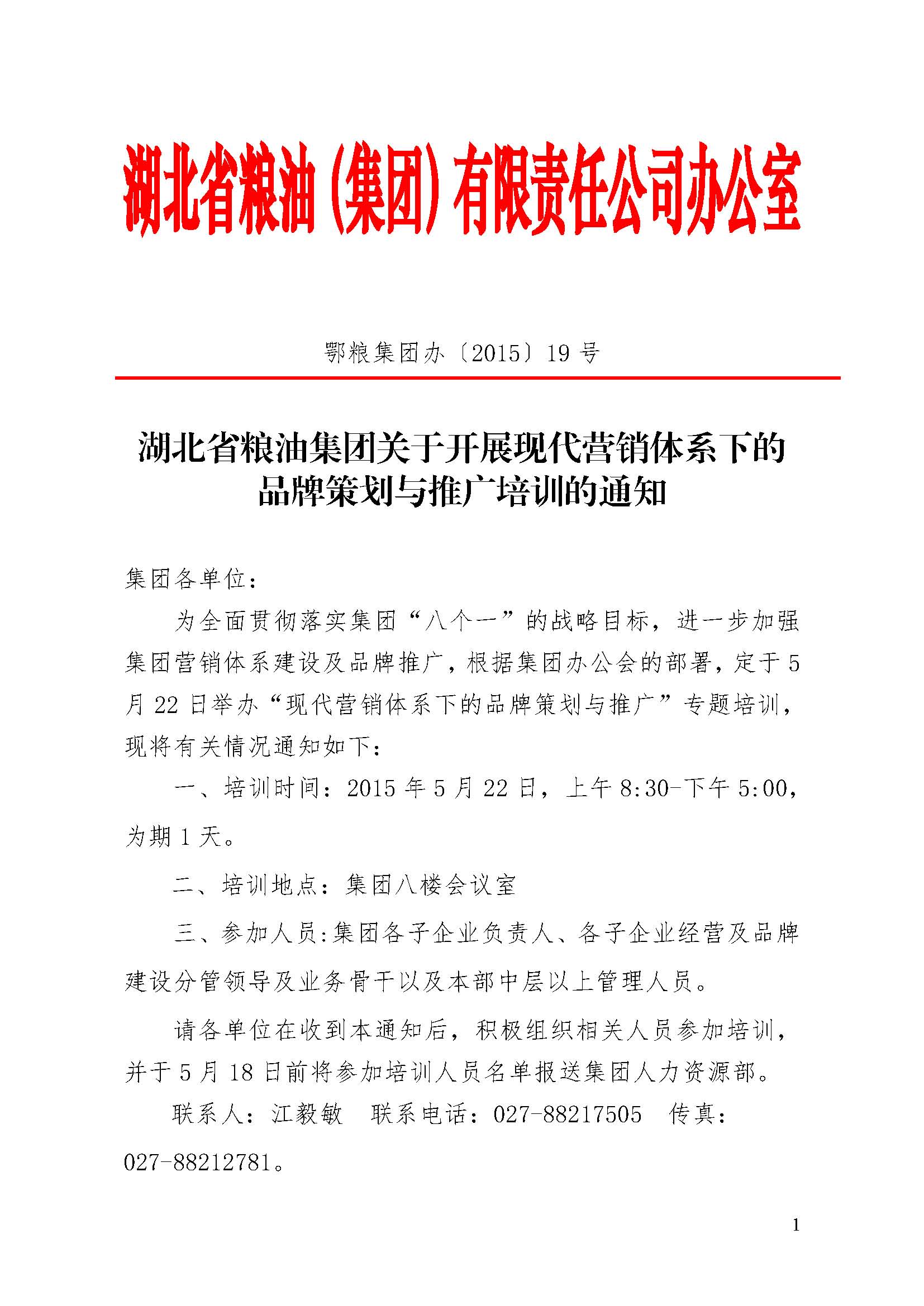 湖北省糧油集團(tuán)關(guān)于開展現(xiàn)代營(yíng)銷體系下的品牌策劃與推廣培訓(xùn)的通知