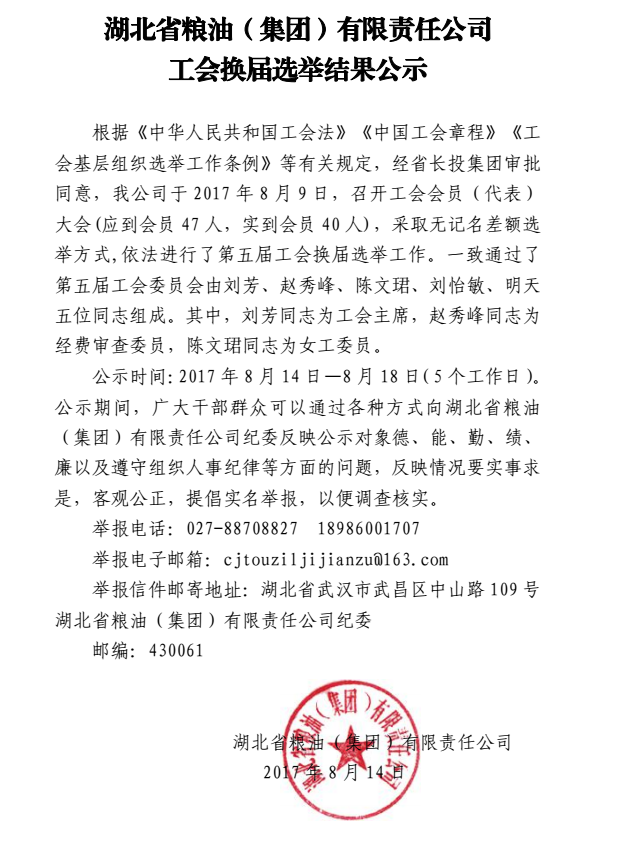 工會換屆選舉結(jié)果公示